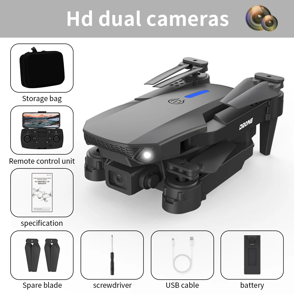 Drone E88 Pro Profesional HD 4K RC Airplane Dual Camera Optical flow Localization RC Quadcopter Airplane Helicopter Boy Toy Color : Black