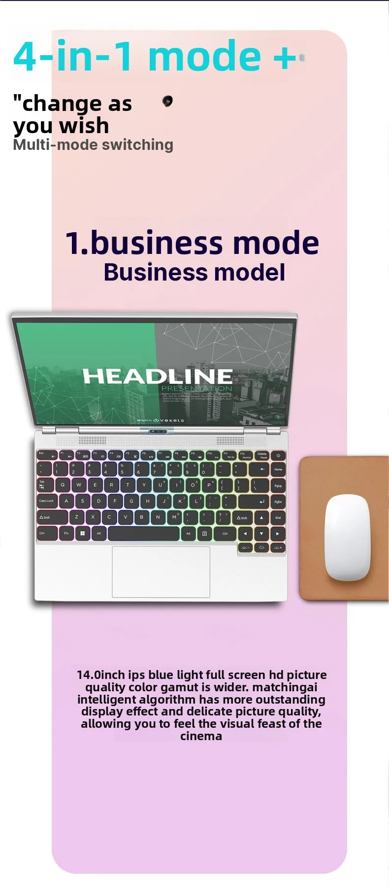 14-Inch Touchscreen 2-in-1 Slim Laptop PC Tablet Intel N95 512G 256G 1TB for Cross-Border Business Office New US Plug Can OEM