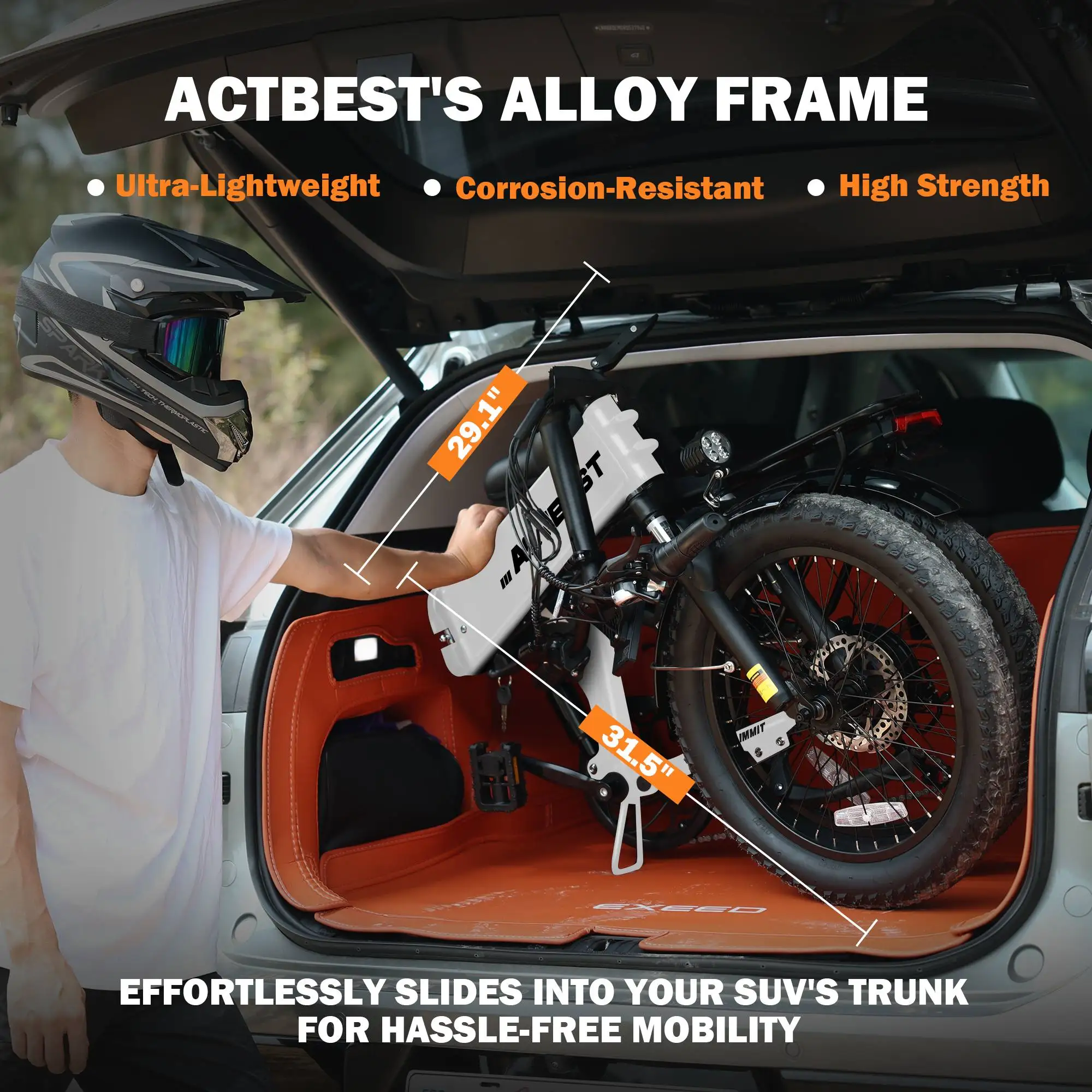 ACTBEST Summit 20 Inch Foldable Aluminum Fat Tire Electric Mountain Bike Ebike for Adults