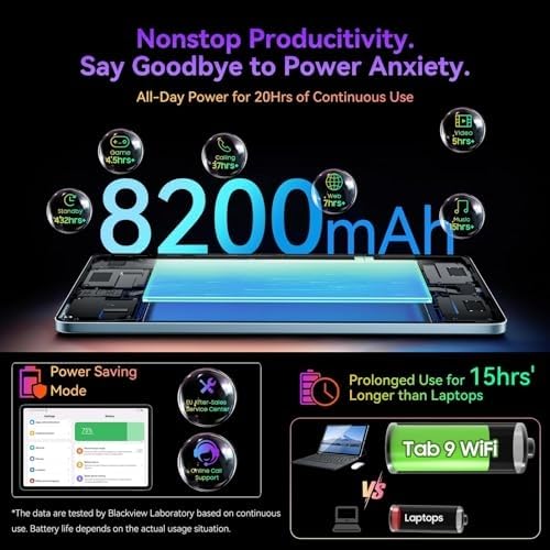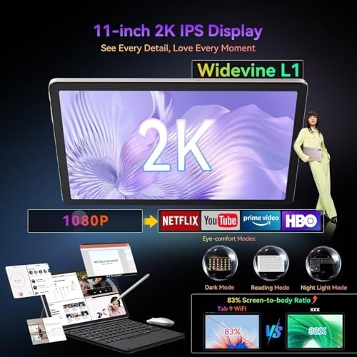Blackview Tab 9WiFi 11 Inch Tablet Android 14 Tablet | 18RAM & 256GB+1TB | 2K INCELL Screen | 12H Gaming & Gemini AI | Unisoc T606 Octa-Core|Widevine L1| 13MP +8MP| Free Case