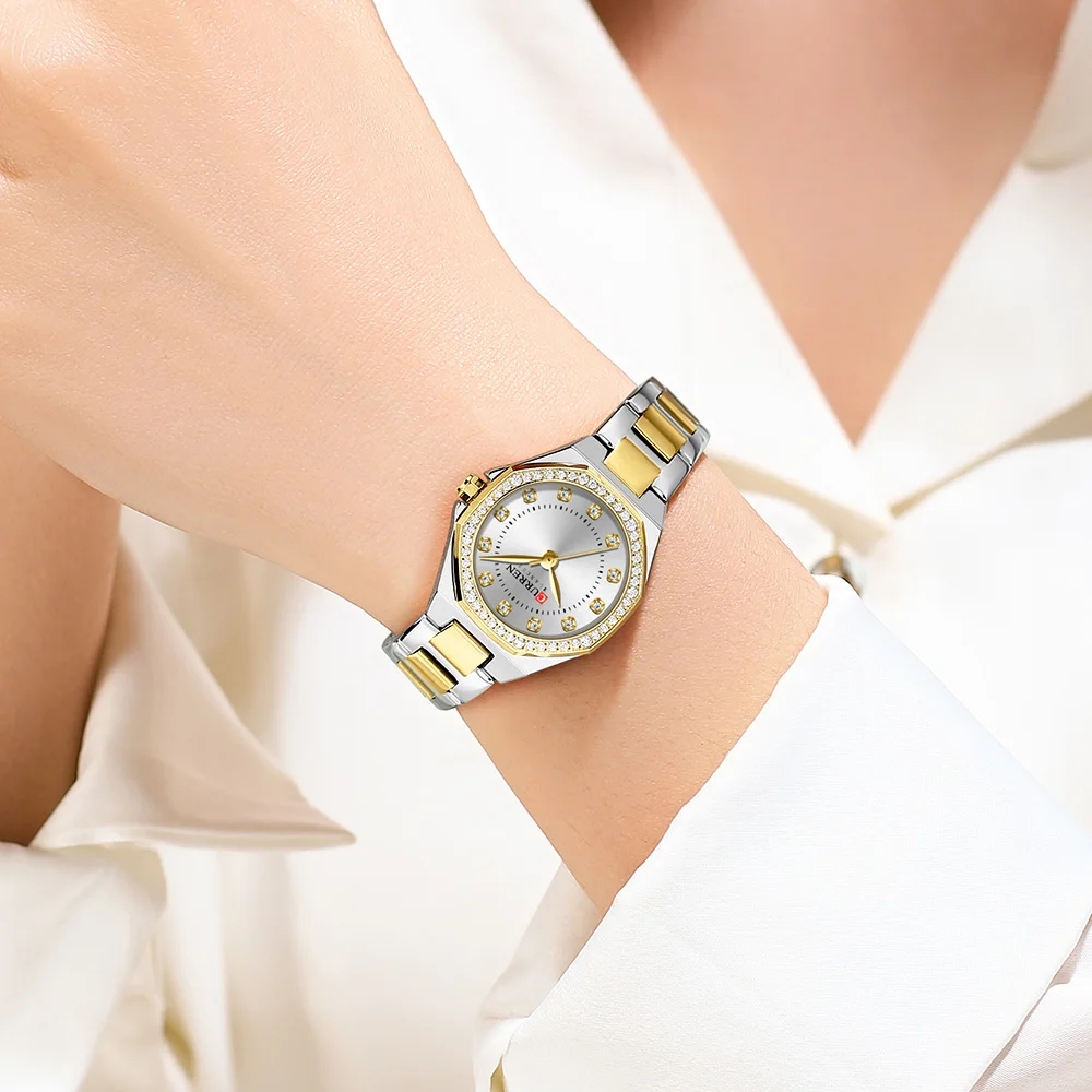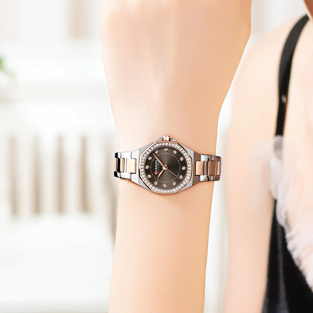 CURREN 9100 Ladies Watch Waterproof Luminous Female Luxury Elegant Simple Diamonds Stainless Steel Strap Quartz Women’s Watches