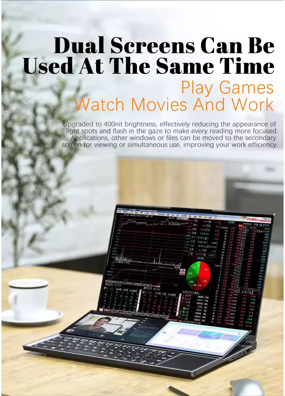 Dual Screen Laptop Intel Core I7-9750H RAM 16GB 1TB SSD High Performance 16″+14″ 1920*1080 Window 10/11
