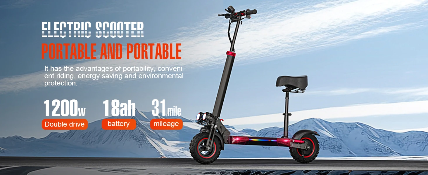 Electric Scooter 1200W Smart Electronic 48V18Ah with 11-inch Double-Light Wide Off-Road Tire J11Max Two-Wheel Models E Scooter
