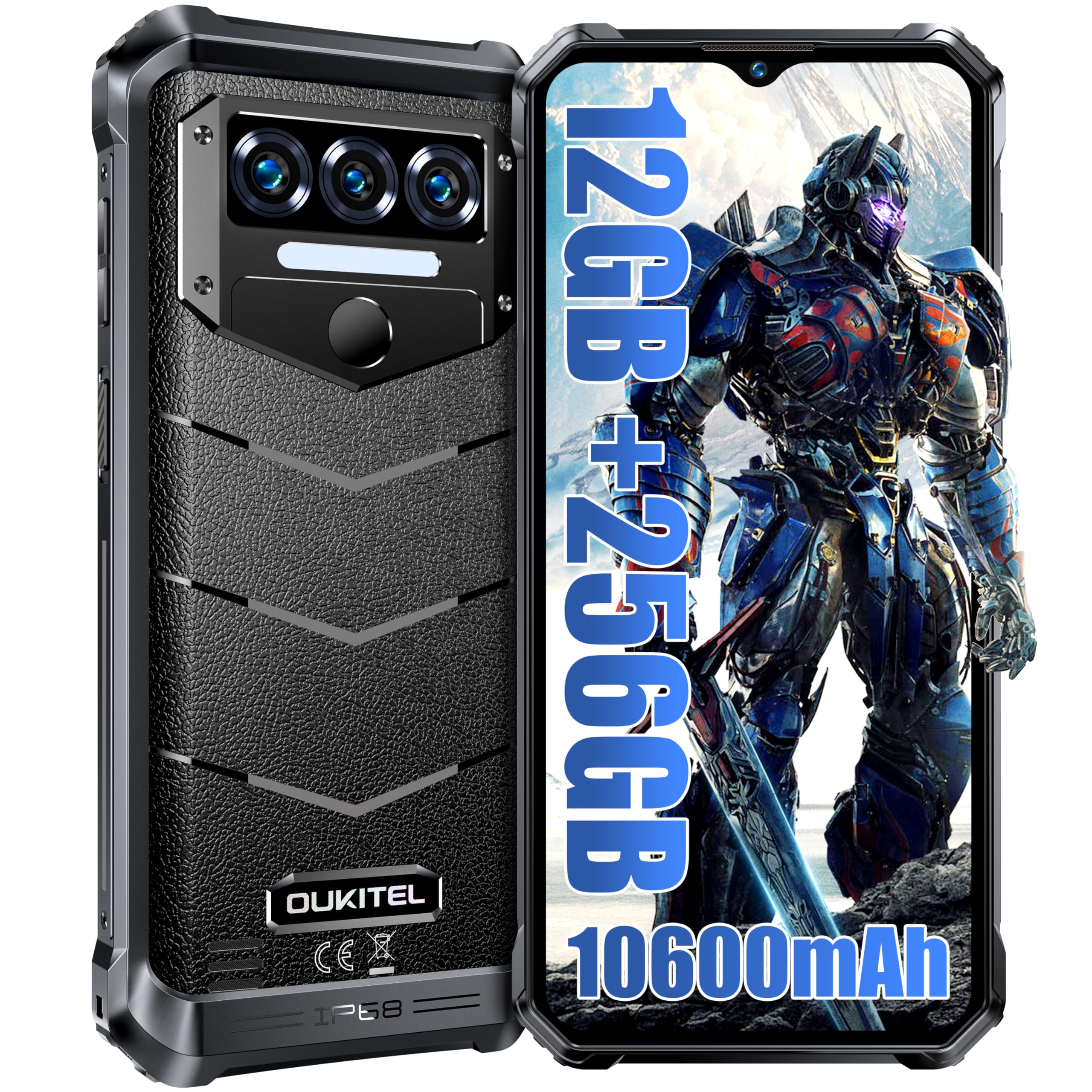 OUKITEL WP38 Rugged Smartphone 2024-12GB+256GB/1TB Expansion 10600mAh Octa-Core Rugged Phone, 6.52”HD+ 13MP Camera Android 13 Indestructible Phone, IP68/IP69K/Face ID/Fingerprint/NFC/OTG/GPS Black