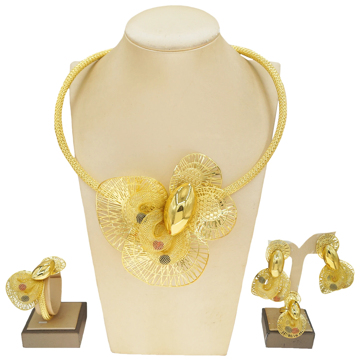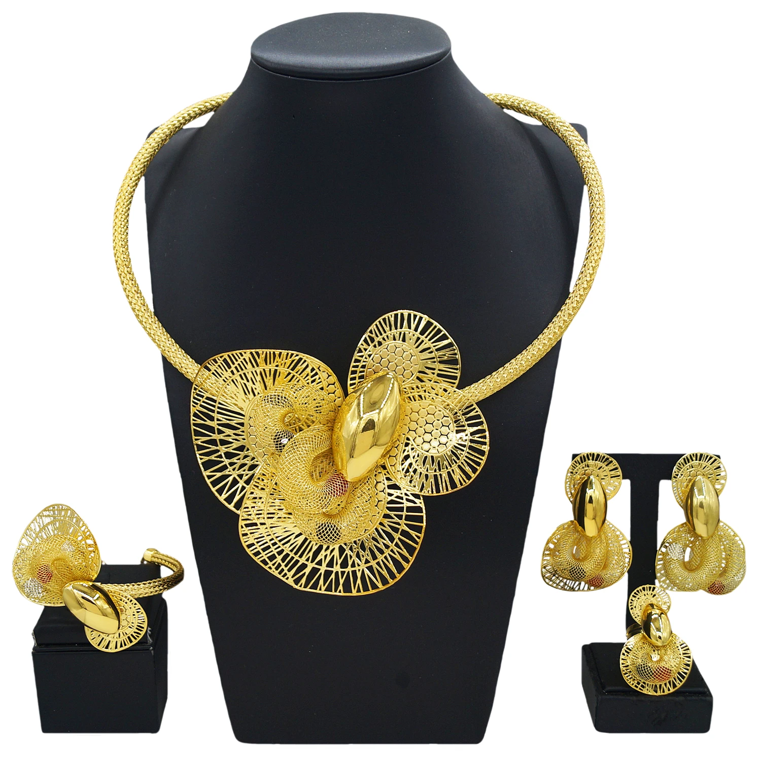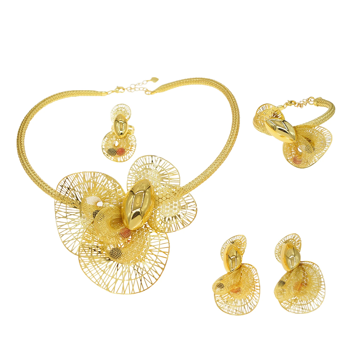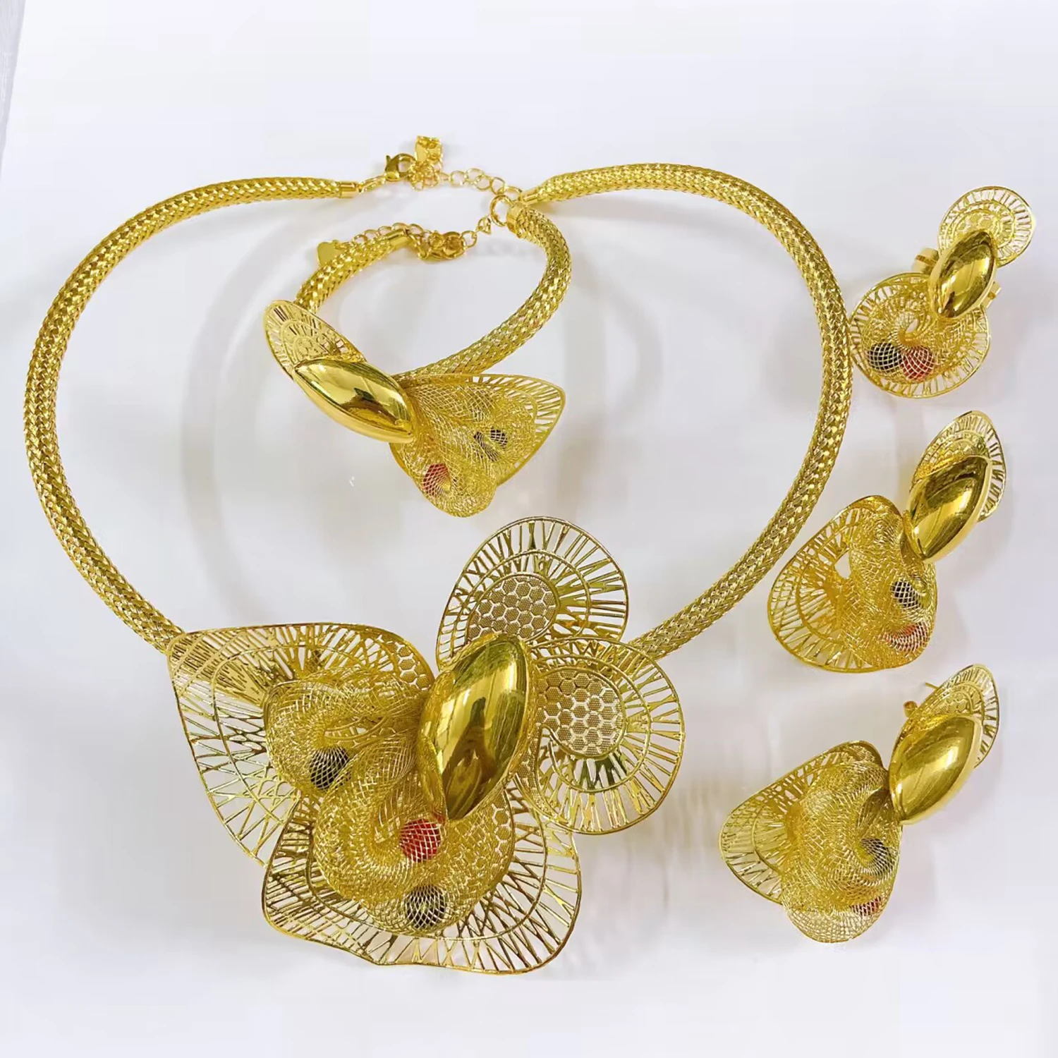Fashion flower style women’s jewelry set factory wholesale jewelry four-piece set women’s gold-plated exquisite jewelry