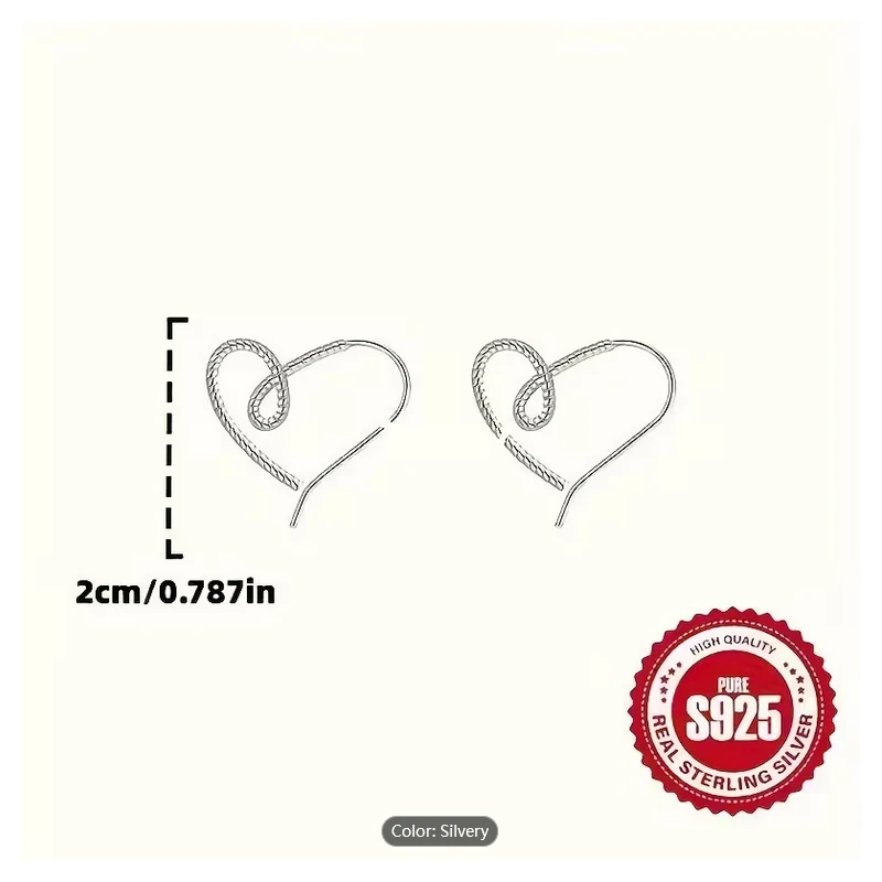 Fine Hoop Earrings Heart Twist Romantic Design 925 Sterling Silver Earrings Women’s Jewelry