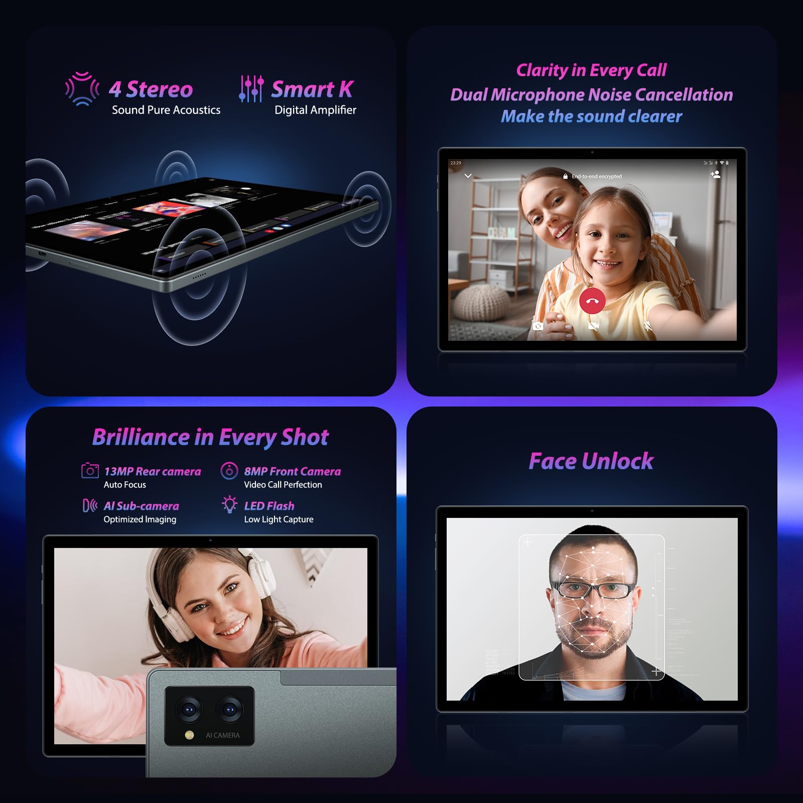 FLYCOAY Tablet 14 inch Android 14 Tablets, 256GB ROM(Expand to 2TB),36GB(12+24) RAM, Octa-Core 2.0GHz,11580mAh Battery, 2000 * 1200 FHD 4 Speakers, 4G LTE/5G WiFi, with Case,Pen,Earphone,Gray