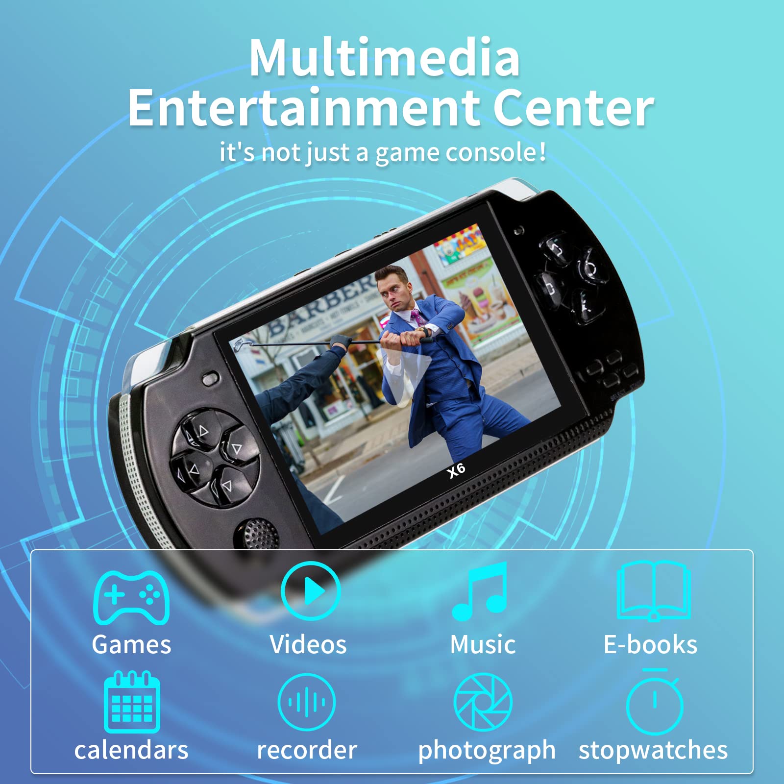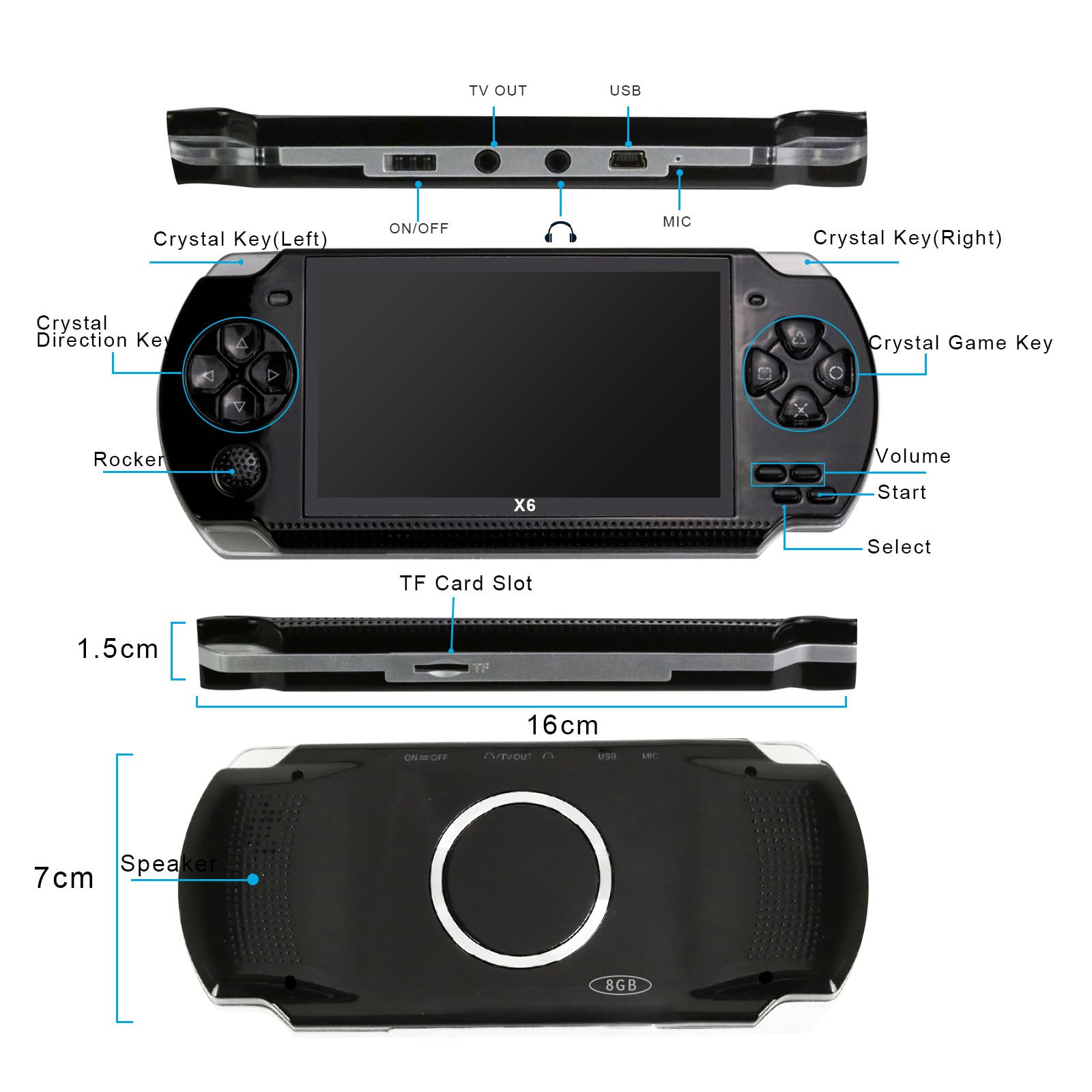 - 【Multifunctional】 Can use as video player, music player, e-book reader, more interesting than simple handheld console. Built-in speaker with inspiring sound effects, unique high quality translucent material, 3.5mm headphone jack, volumecontrol, low power indicator