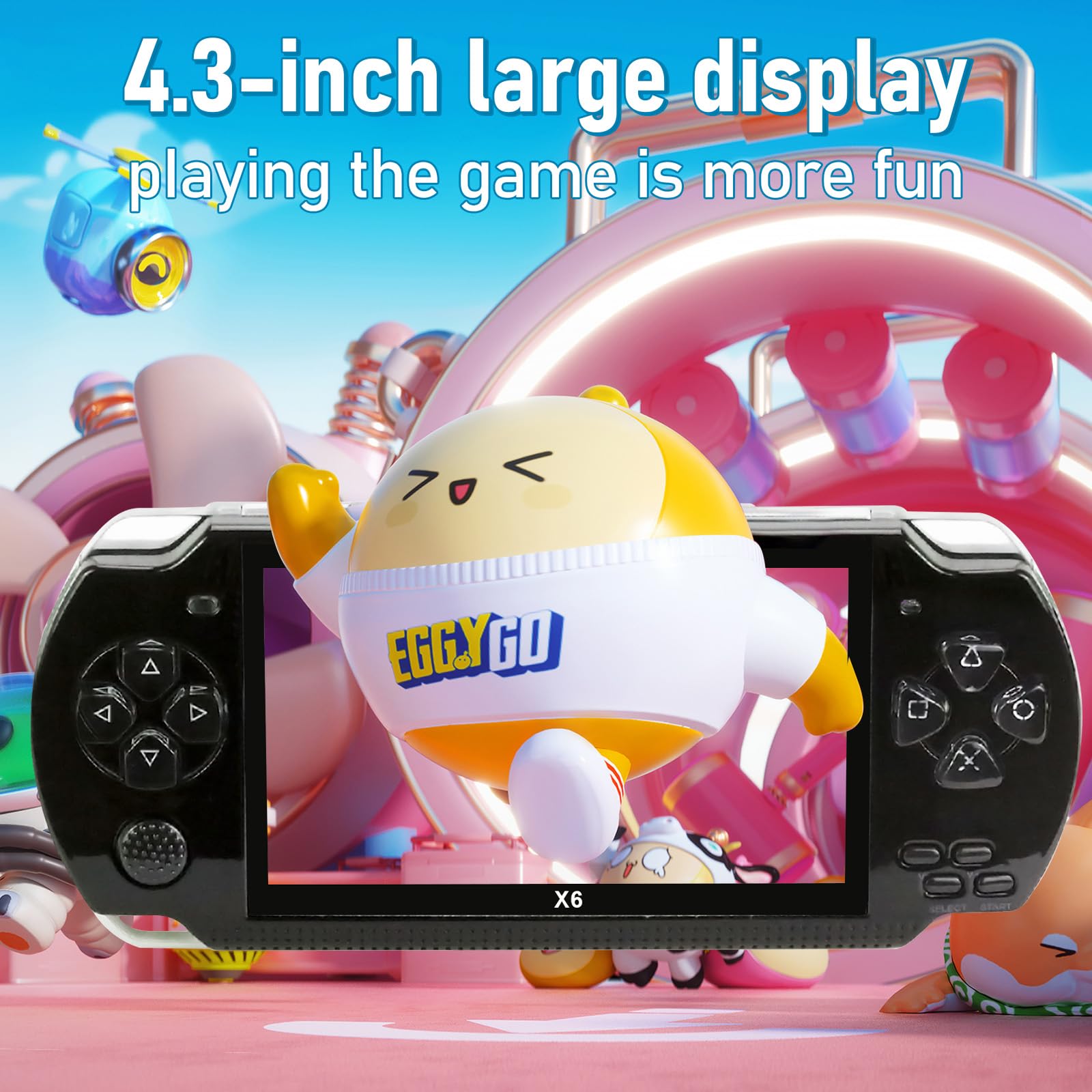 - 【4.3 Inch TFT Screen】 Clear full color TFT screen with display scale of 16:9, backlit for play virtually anywhere. Just fine in kid’s palm, lightest portable game console kept in pocket. Let you enjoy the best visual experience