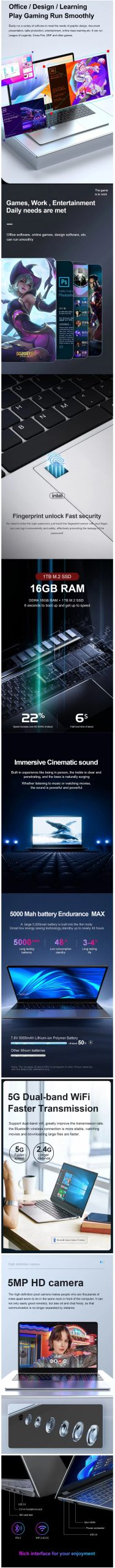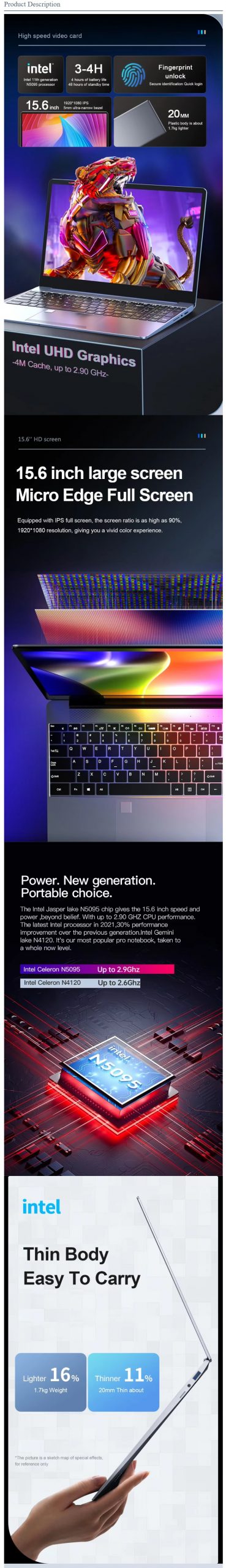 Gaming Laptop 15.6 inch Intel N5095 16GB RAM 1T SSD for Business Office Wind ows 10 Color: Silver