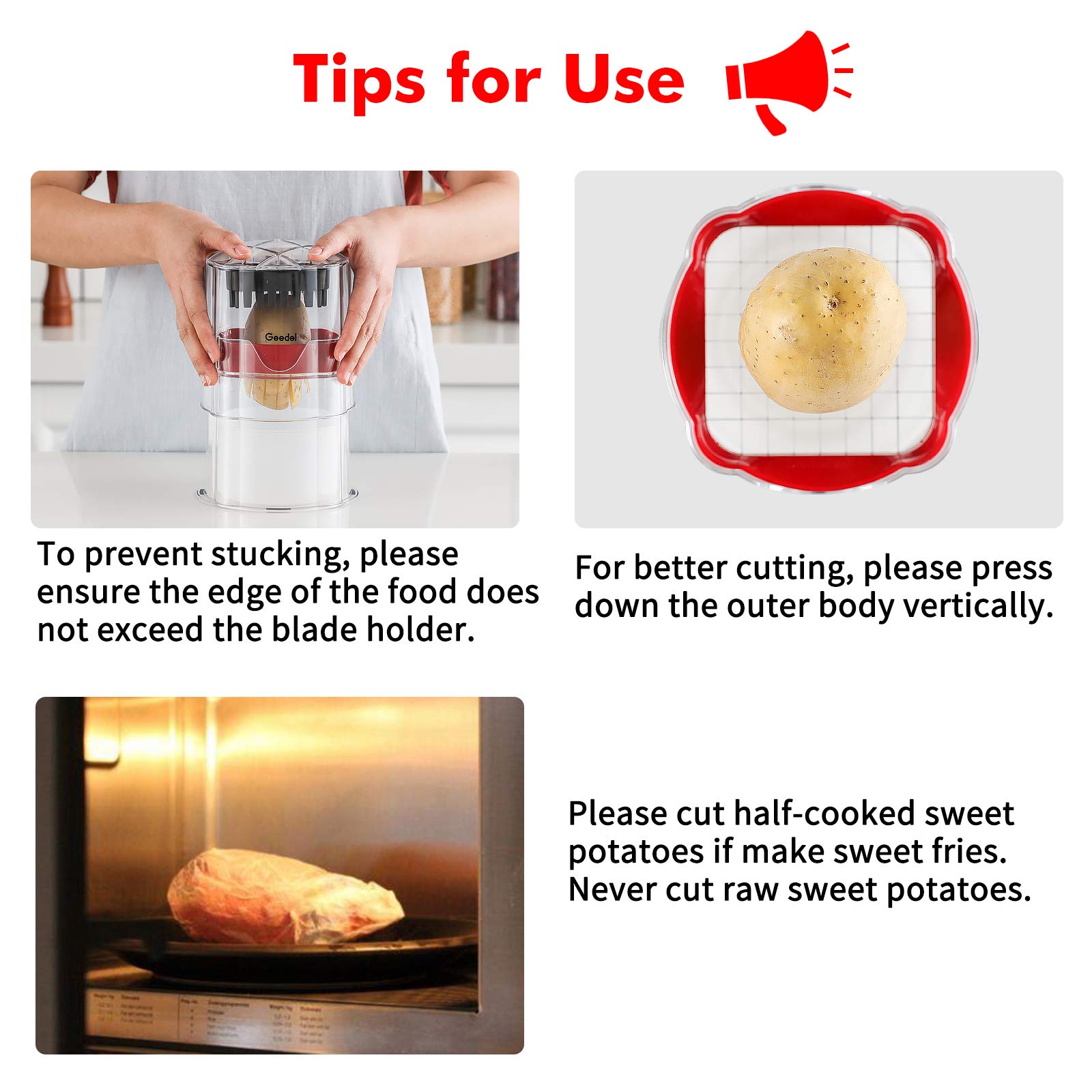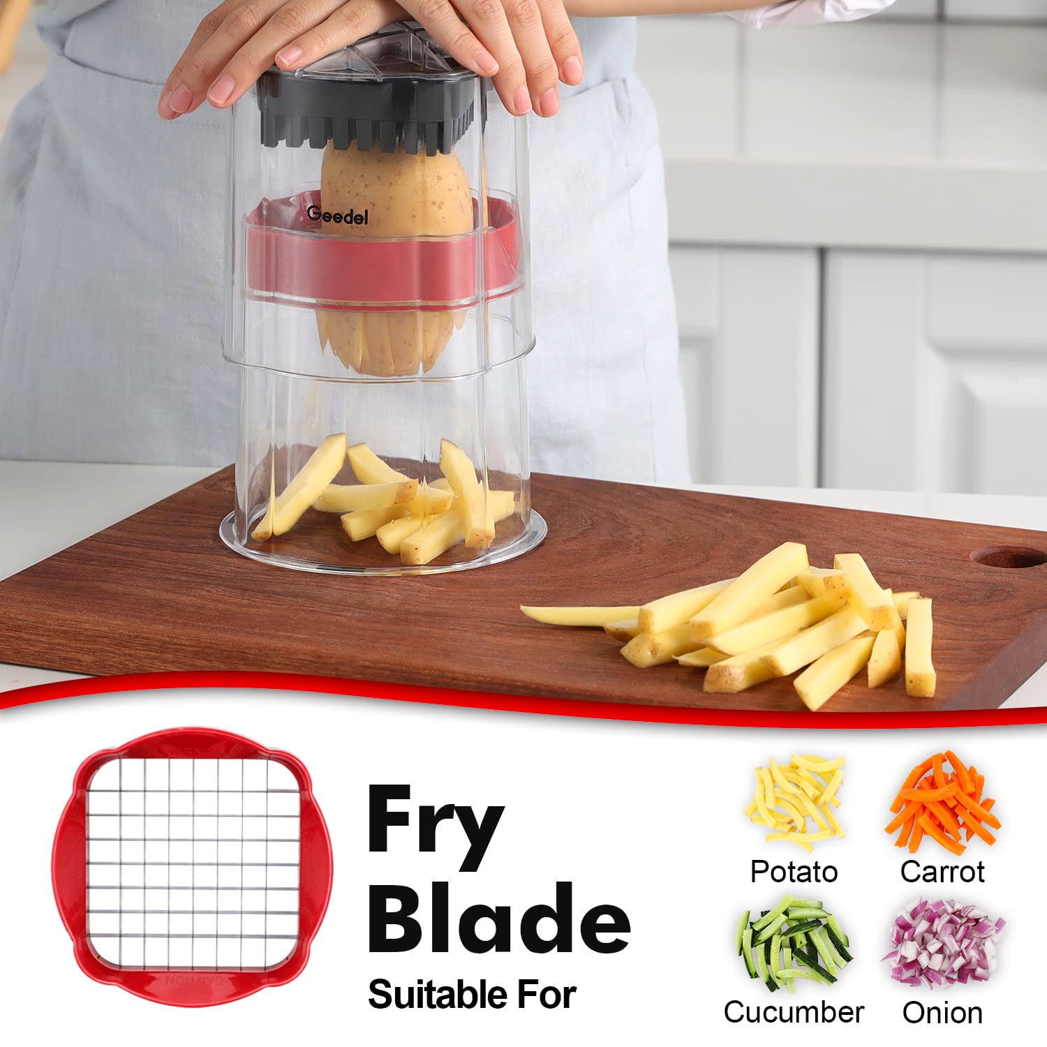 Geedel Chip Cutter, Potato Chipper with 3 Stainless Steel Blades, Fast Cutting, Apple Corer Slicer for Fruits, Potato Cutter for Carrot, Onion, Cucumber, Multi-Functional French Fry Cutter, Red