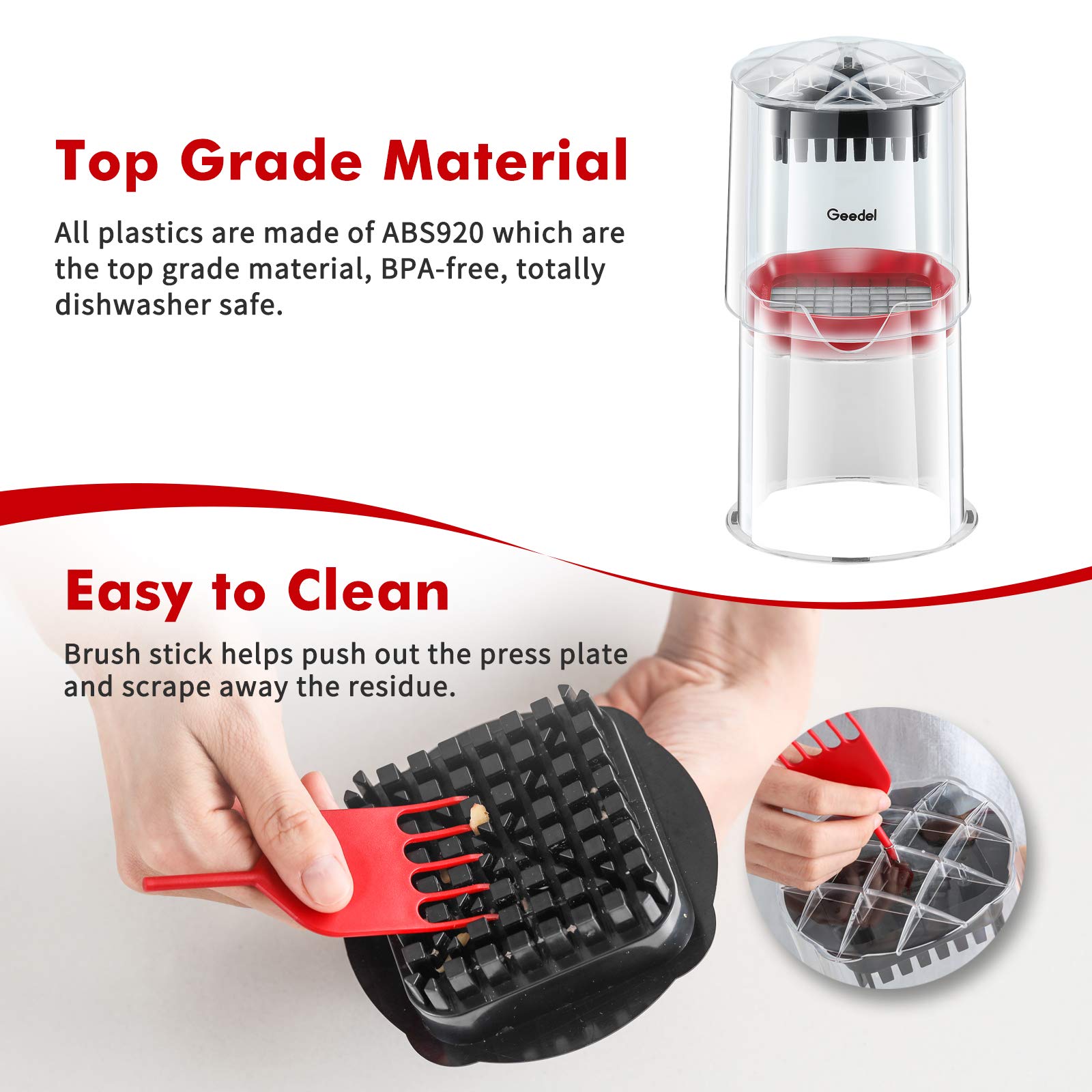 Transparent Material: Geedel’s potato cutter is crafted from certified food-grade ABS, offering full process visibility.Antimicrobial properties of the chip maker inhibit bacterial growth, ensuring hygienic and safe food prepa