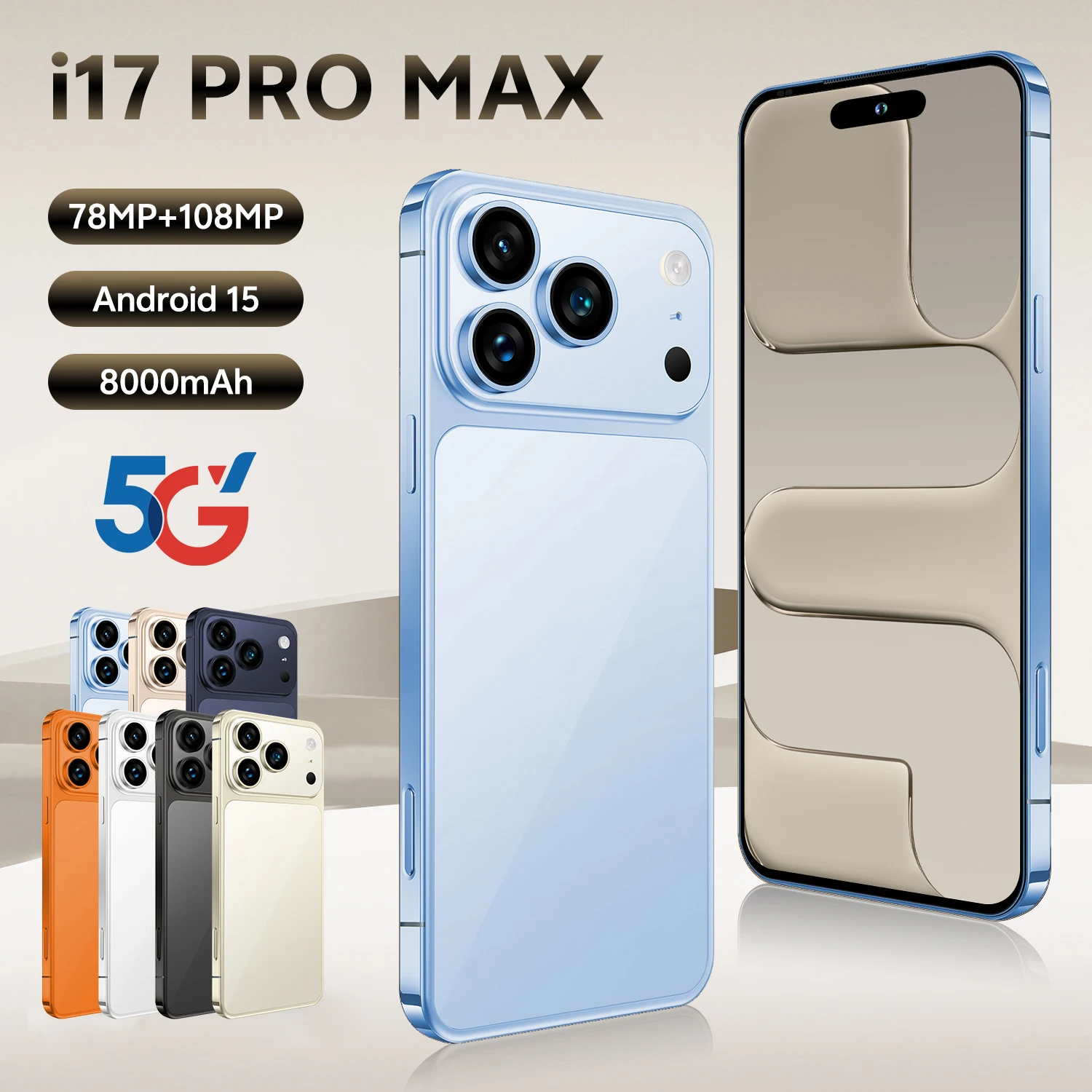 Latest I17Pro Max Smartphone 7.3 Inch HD Display Android French Dual Card 108MP 16GB 1TB Storage Battery