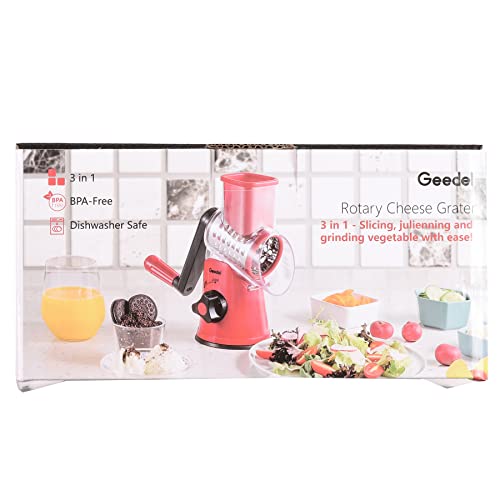 Rotary Cheese Grater, Vegetable Slicer with Three Drum Blades, Grater for Kitchen Faster and Easy Cutting, Rotary Drum Grater Ideal for Cheese, Cucumber, Carrot. etc.