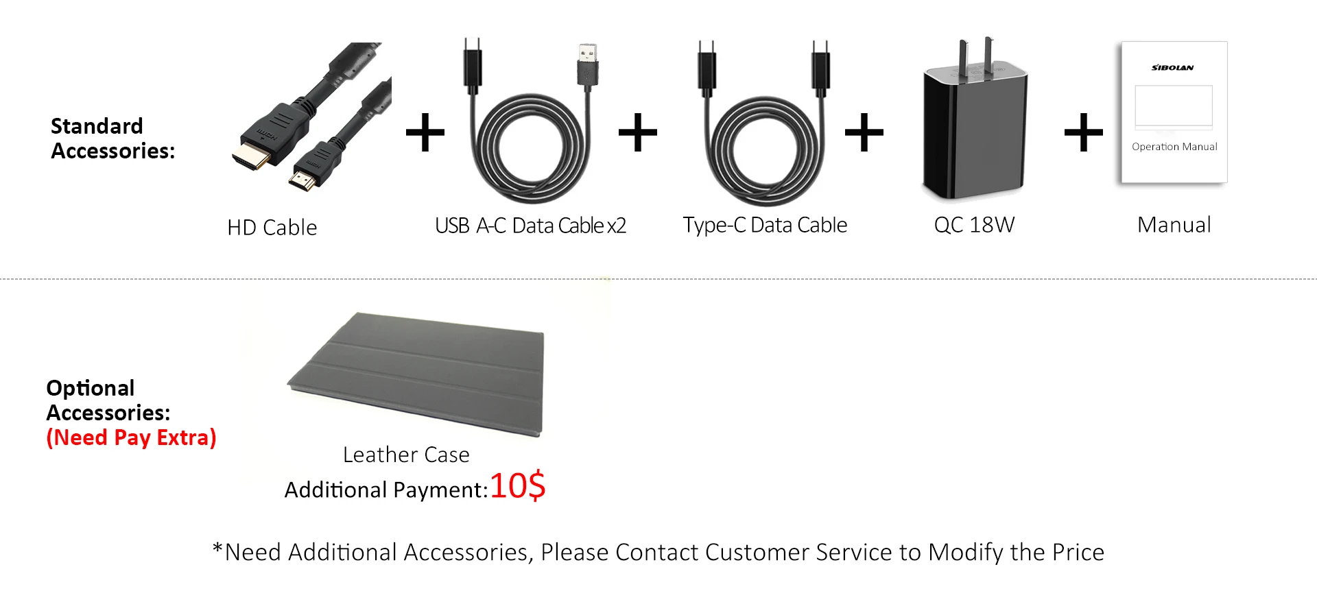 | Optional(Pay extra to get ) | Leather Case*1 +$10 |