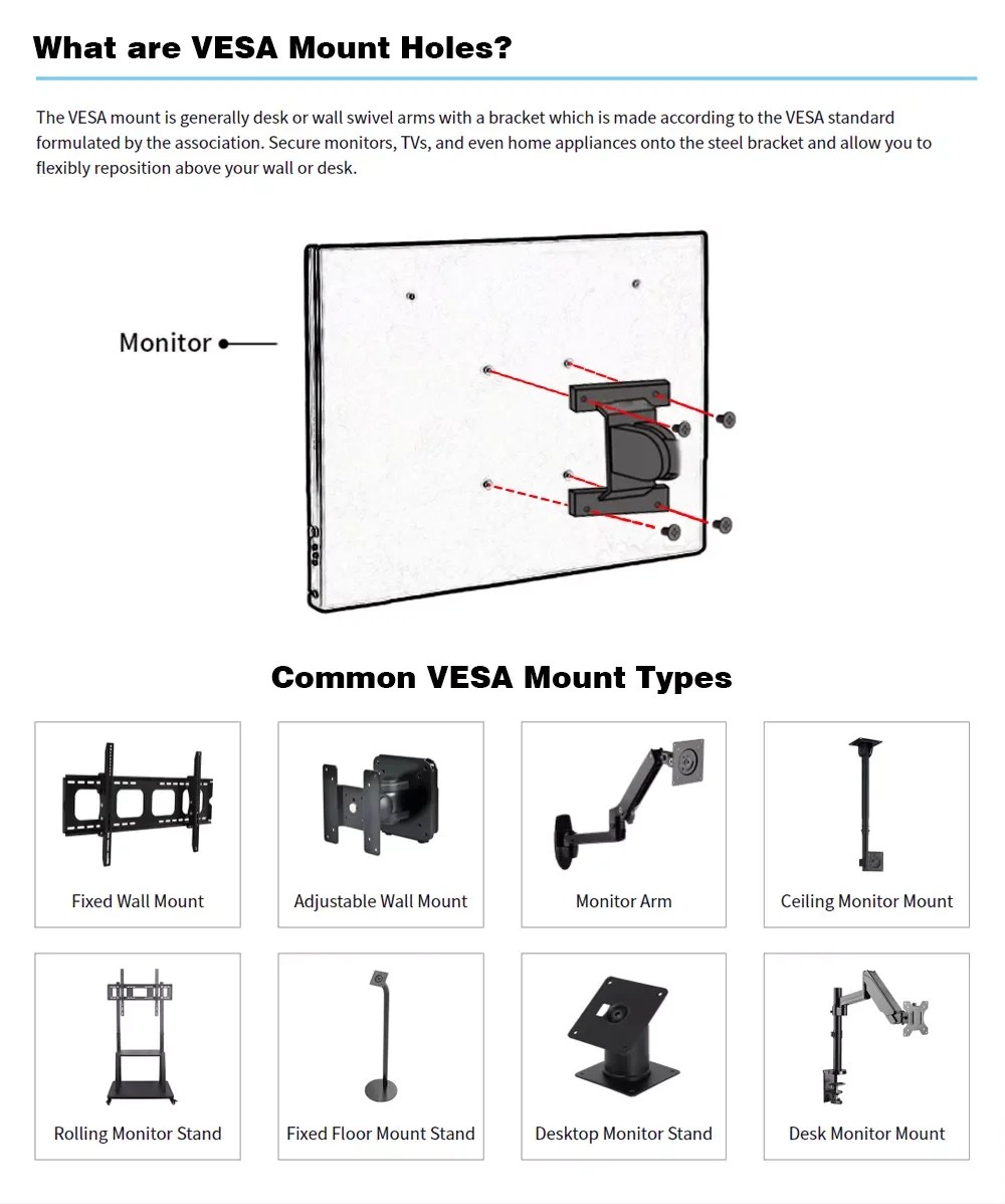Standard 75*75 VESA Mount Hole for More Scenarios