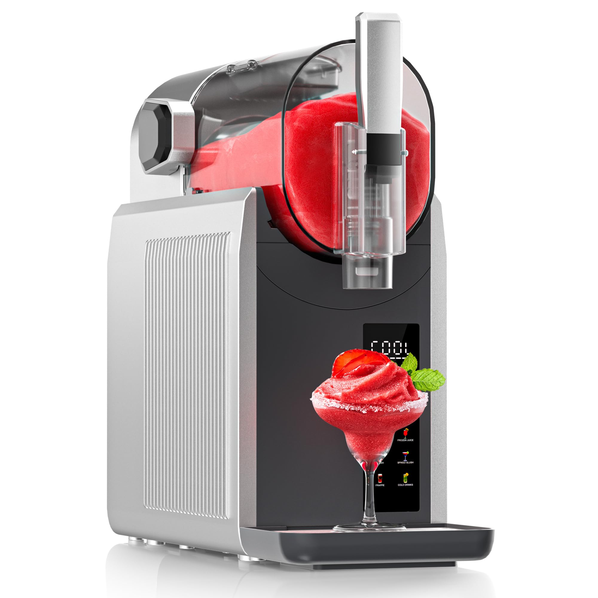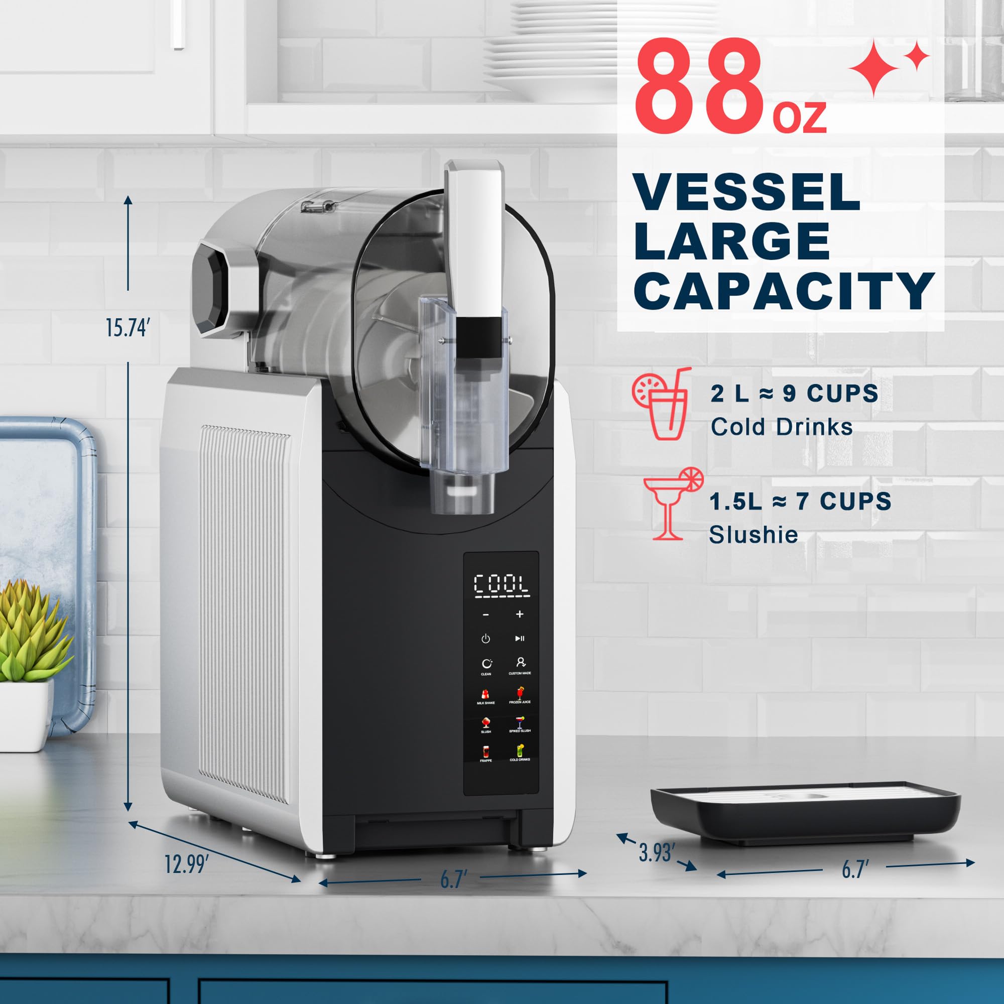 NO ICE, PERFECT TEXTURE!: Say goodbye to the hassle of ice cubes! This slushie machine features a two-part system that spins the auger around the cooling cylinder, evenly and quickly freezing liquids to create perfectly textured slushies without any dilution. Enjoy smooth, ice-free frozen drinks anytime, effortlessly!